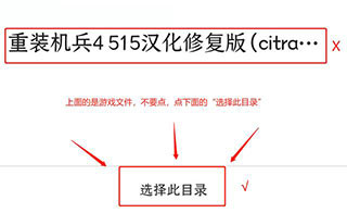 4、找到你放游戏的文件夹,这时它会显示你的游戏文件,不要直接点击游戏文件,点半天也点不进去,点最下方的选择此目录即可。
