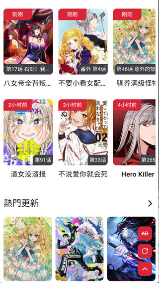 1、goda漫画中文版首页为用户推荐了热门的漫画资源类型。