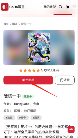 3、用户点开漫画进入详情页,点击开始阅读。