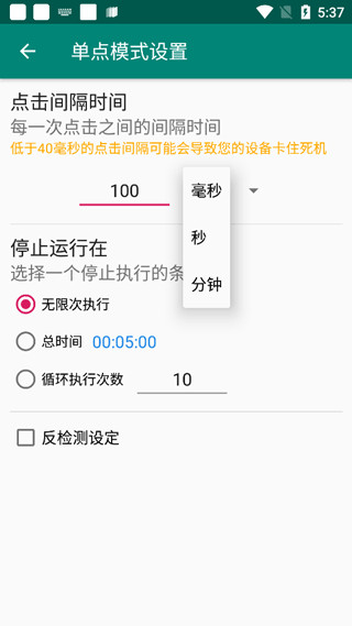 支持设定停止时间,自动结束点击任务,避免持续运行。