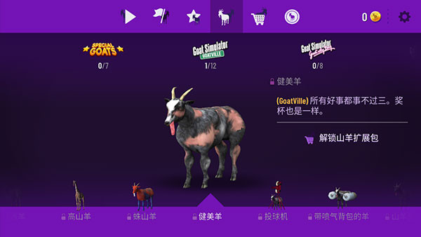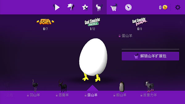4、游戏中有多种山羊种类可以选择,不同的山羊所拥有的能力也不同;