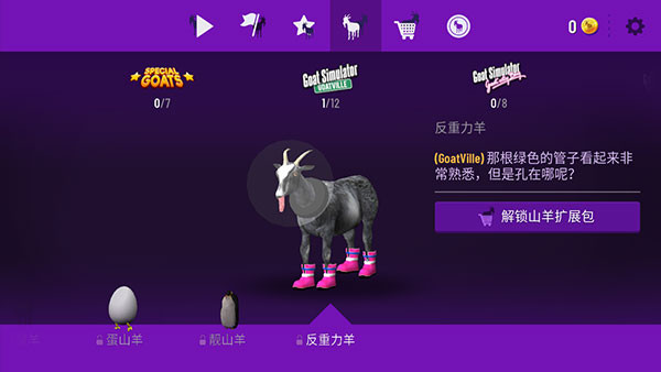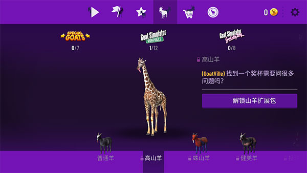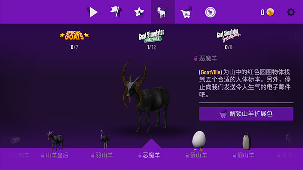3、需要完成游戏给的任务,这样可以获得得分,可以解锁不同的山羊;