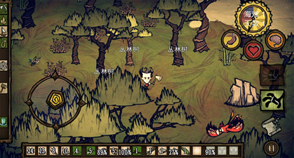 前期:食物的话在初始岛里可以多捡种子和浆果撑一会,尽量早点在初始岛做好船出海。也可以手撕点蝴蝶回回血和饥饿。实在不会或懒得探图可以找找的烧出点木炭来做锅,安个临时点。